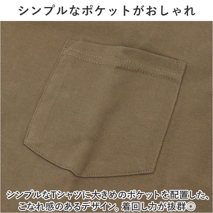 ・シンプルなTシャツに大きめのポケットを配置した、こなれ感のあるデザイン。着回し力が抜群◎