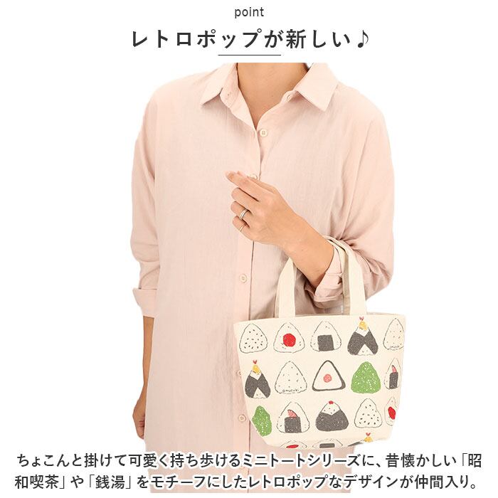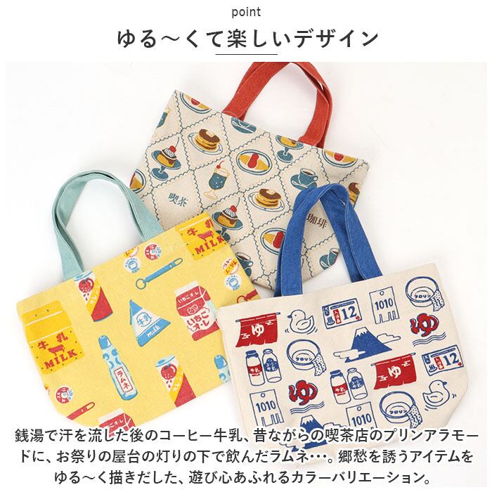 ・片腕にちょこんと掛けて可愛く持ち歩けるミニトートシリーズに、昔懐かしい「昭和喫茶」や「銭湯」をモチーフにしたレトロポップなデザインが仲間入り。