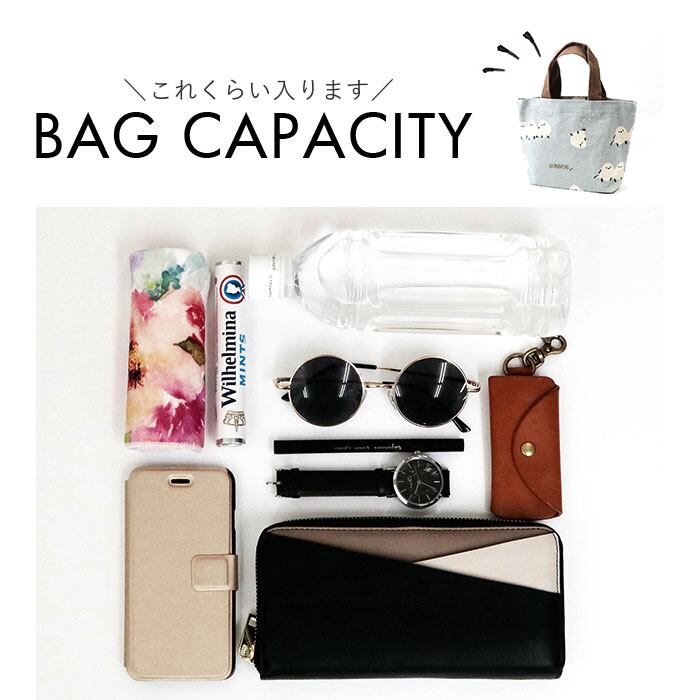 ・ランチトートとしてはもちろん、お財布やスマートフォンなど身の回りの小物をまとめて、カフェやワンちゃんの散歩などちょっとしたお出かけにもぴったり。
