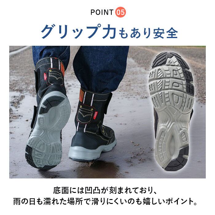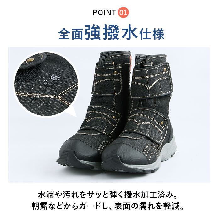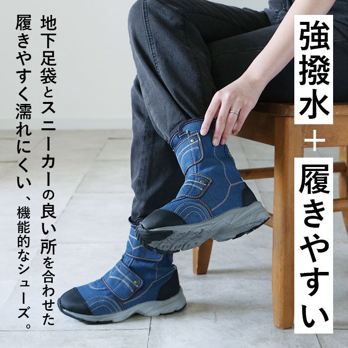 ・カジュアルでスタイリッシュにキマる、デニムデザインの農業専用シューズ。