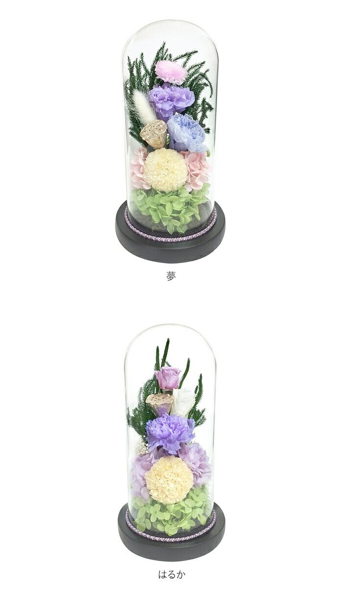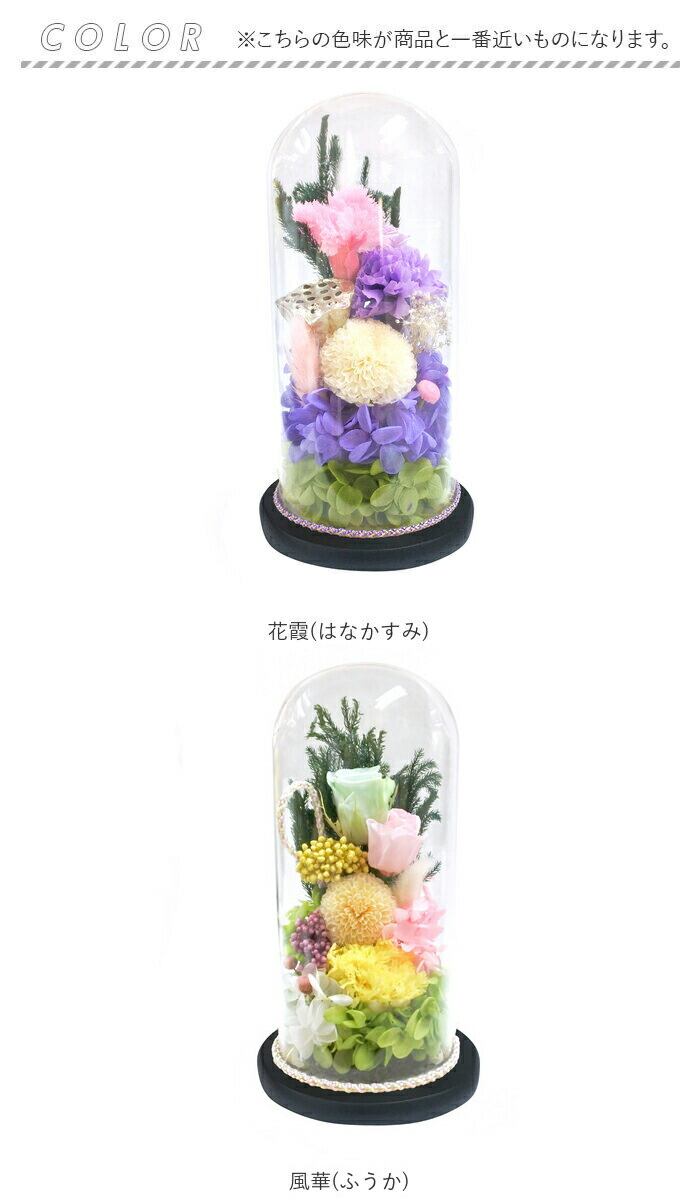 ・大切な方を偲んで、いつまでも綺麗なお花を捧げたい・・・。色彩豊かなプリザーブドフラワーをガラス容器に閉じ込めた「お供え ガラスドームアレンジメント」