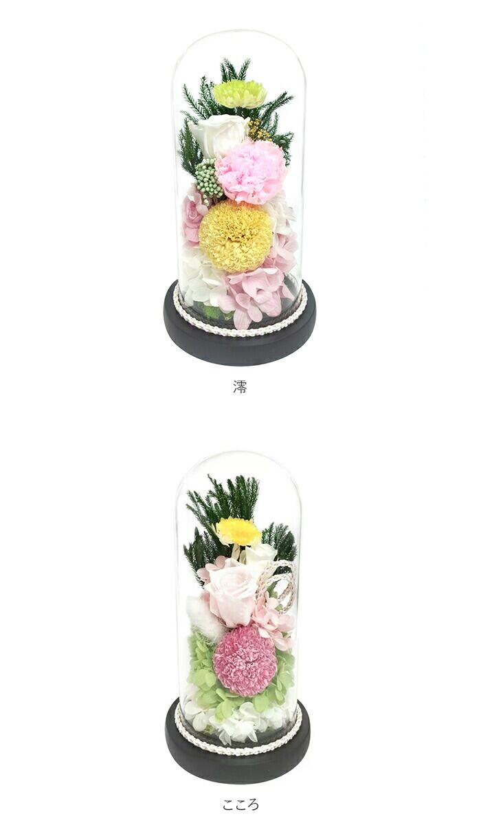 ・透明なガラスドームに覆われているので、お花がホコリで汚れてしまう心配がなく、手間のかかる水やりや水換えも一切不要。
