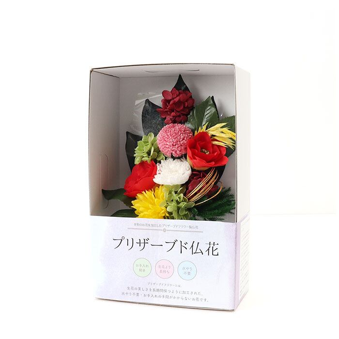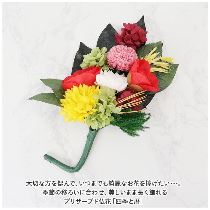 ・大切な方を偲んで、いつまでも綺麗なお花を捧げたい・・・。季節の移ろいに合わせ、美しいまま長く飾れるプリザーブド仏花「四季と暦」