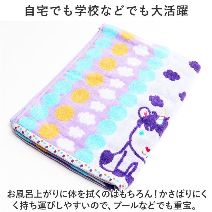 ・お風呂上がりに体を拭くのはもちろん!かさばりにくく持ち運びしやすいので、プールなどでも重宝。