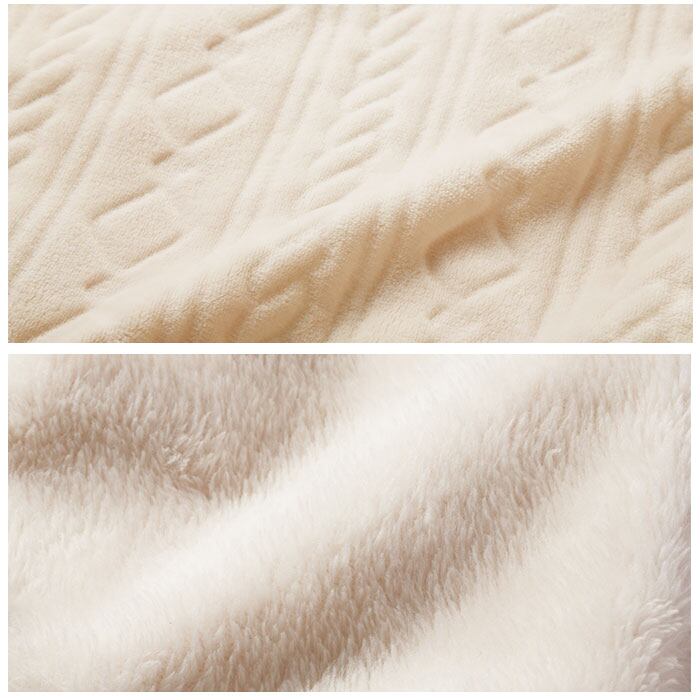 ・ケーブル編み風の型押しデザインを施した、立体感のある仕上がり。部屋着にはもちろん、ちょっとしたお出かけにも重宝。