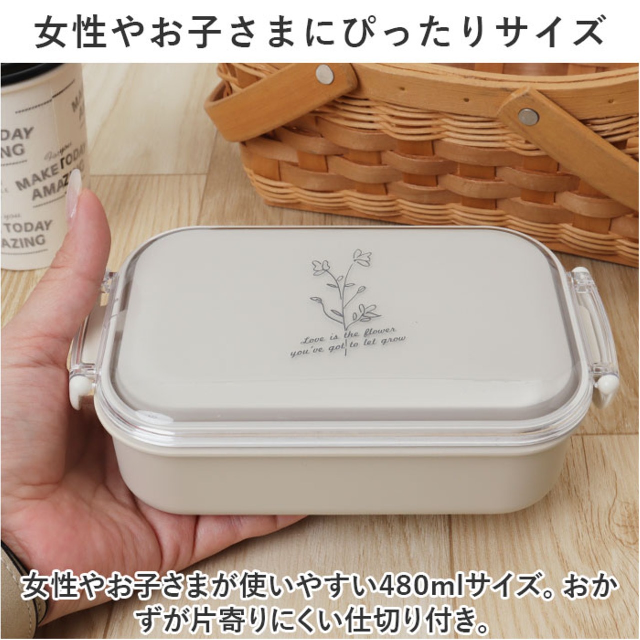 ・女性やお子さまが使いやすい480mlサイズ。おかずが片寄りにくい仕切り付き。