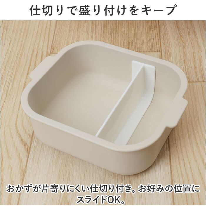 ・おかずが片寄りにくい仕切り付き。お好みの位置にスライドOK。
