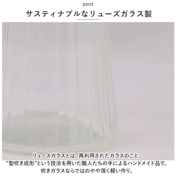 ・リューズガラスとは、再利用されたガラスのこと。”型吹き成形”という技法を用いた職人たちの手によるハンドメイド品で、吹きガラスならではのやや薄く軽い作り。