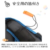 ・前面の両肩に付いている反射板と鮮やかなカラーリングで緊急時の視認性がUP!もしもの時に引きあげられるように背中に持ち手が付いているのも注目ポイント!