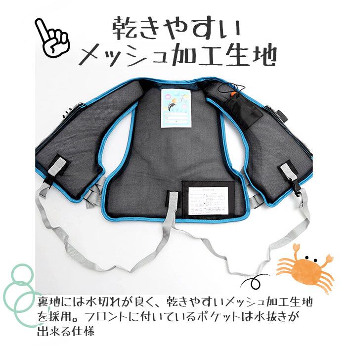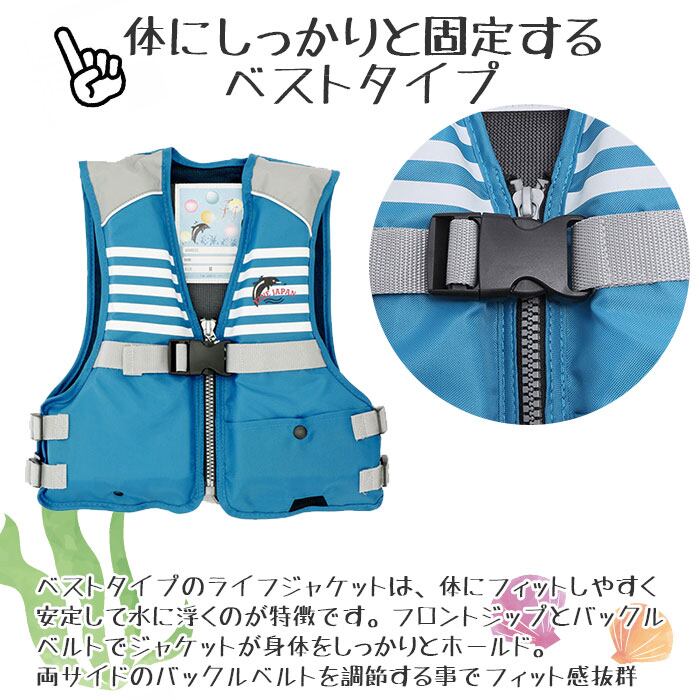 ※釣り、海水浴、川遊び、プール等のいろいろなレジャーシーンで大活躍が期待できますが、ご使用の際には、お子様に必ず股ベルト、ファスナー、正面セーフティベルトをしっかり着用して下さい。正しく装着ができていない場合、転落時に脱げてしまったり、正しい姿勢で浮くことができなくなります。