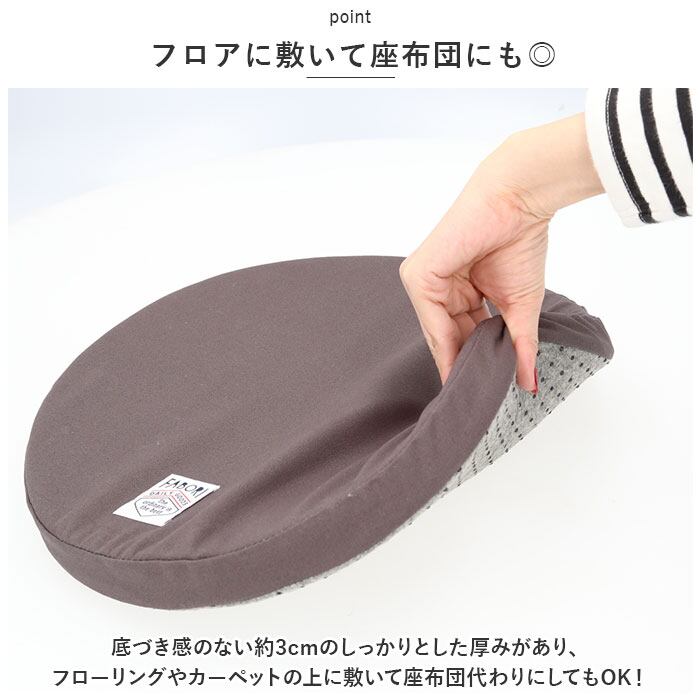 ・底づき感のない約3cmのしっかりとした厚みがあり、フローリングやカーペットの上に敷いて座布団代わりにしてもOK!