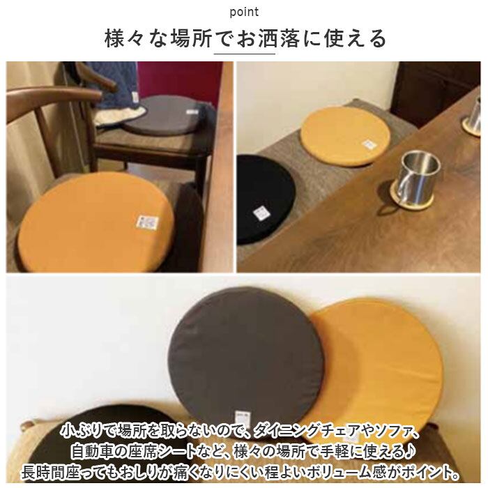 ・小ぶりで場所を取らないので、ダイニングチェアやソファ、自動車の座席シートなど、様々の場所で手軽に使える♪長時間座ってもおしりが痛くなりにくい程よいボリューム感がポイント。