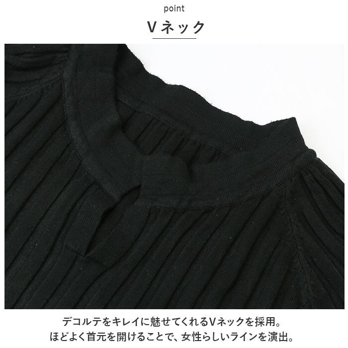 ・デコルテをキレイに魅せてくれるVネックを採用。ほどよく首元を開けることで、女性らしいラインを演出。