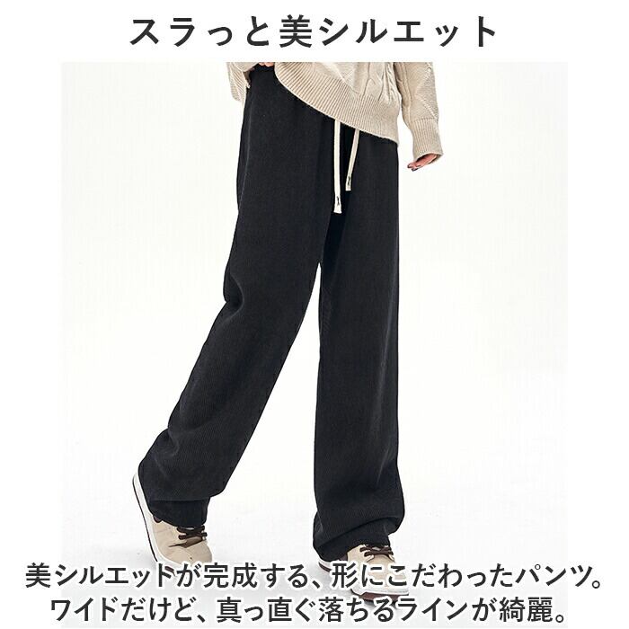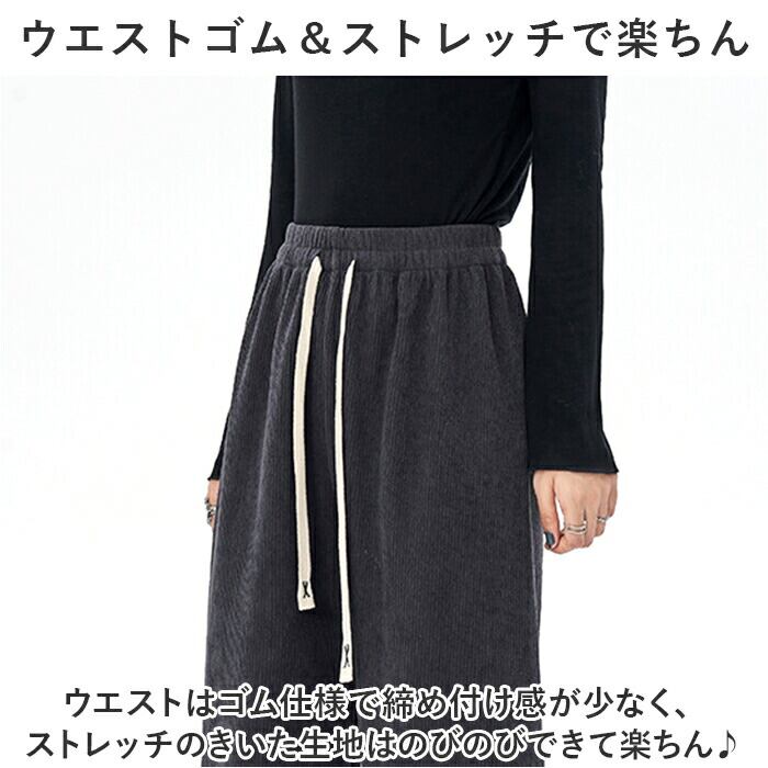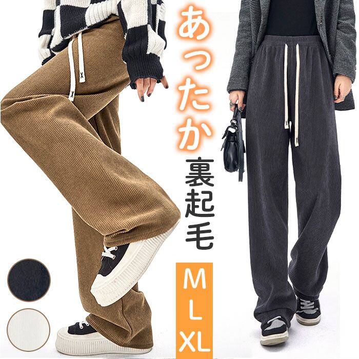 ワイドパンツ レディース 通販 パンツ ズボン 長ズボン 裏起毛 ウエストゴム 体型カバー ゆったり 暖かい あたたかい あったか コーデユロイ ストレッチ 厚手 保温 秋 冬 リブ カジュアル ナチュラル 通学 通勤 オフィス ボトムス