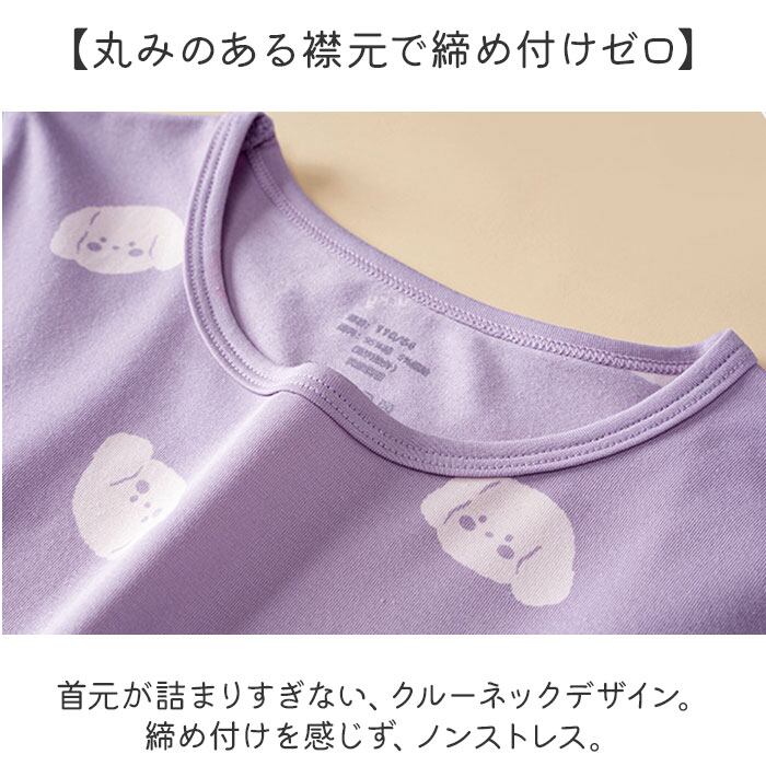 ・首元が詰まりすぎない、クルーネックデザイン。締め付けを感じず、ノンストレス。
