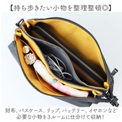 ・財布、パスケース、リップ、バッテリー、イヤホンなど必要な小物を3ルームに仕分けて収納!