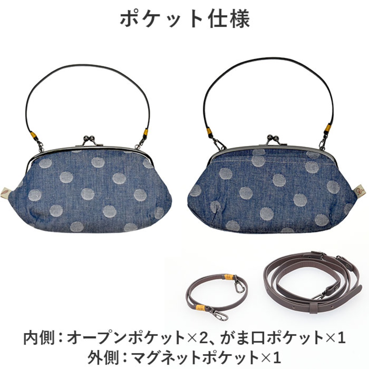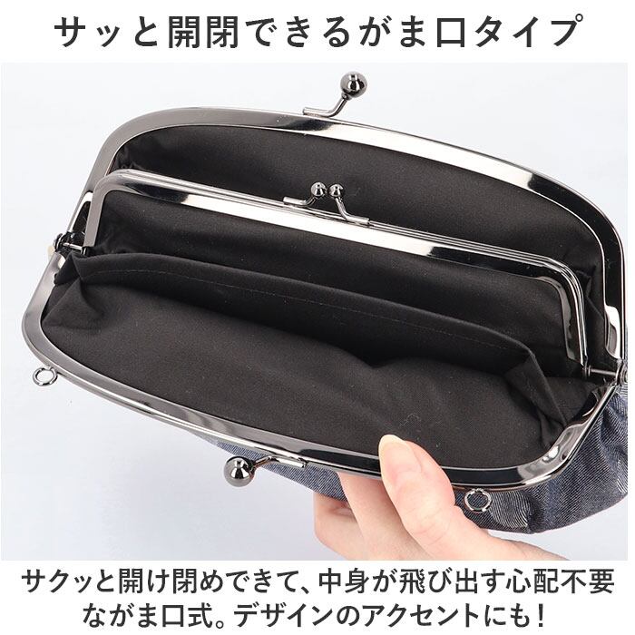 ・サクッと開け閉めできて、中身が飛び出す心配不要ながま口式。デザインのアクセントにも!