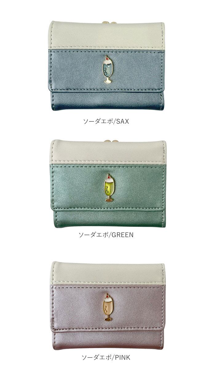 ・フラップのユニークなモチーフが個性的なワンポイント♪手のひらサイズで使いやすい「がま口折り財布」が新登場。