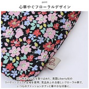 ・淡い色彩の小花を散りばめた、英国Liberty社のリバティープリント生地を使用。気品あふれる優しいフローラル柄で、いつものファッションがグッと華やかな印象に。