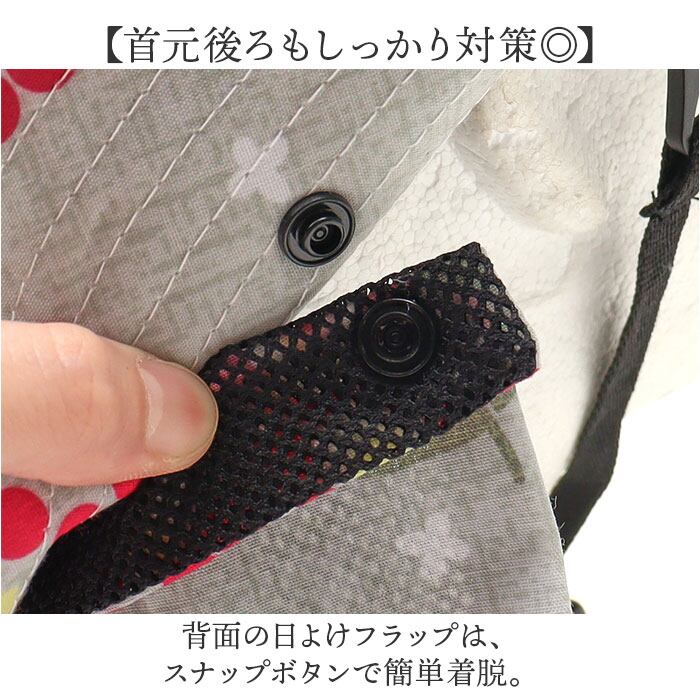 ・背面の日よけフラップは、スナップボタンで簡単着脱。