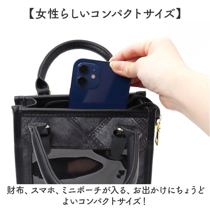・財布、スマホ、ミニポーチが入る、お出かけにちょうどよいコンパクトサイズ!
