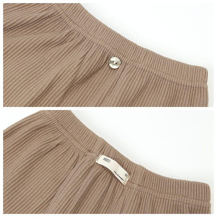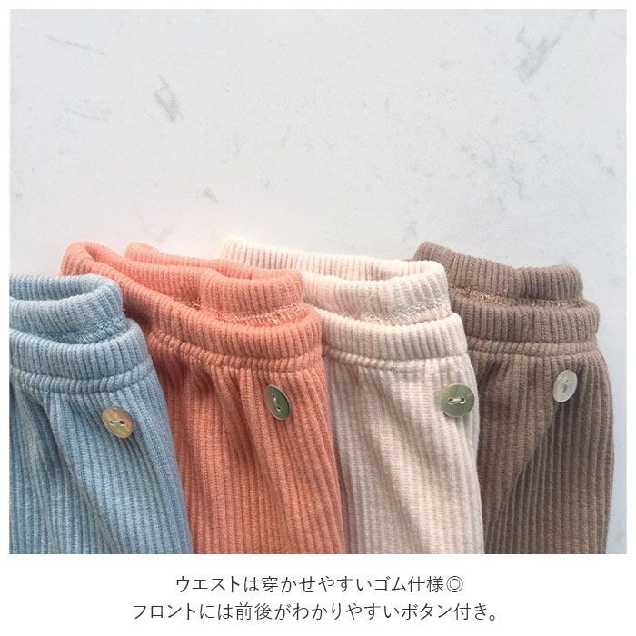 ・ウエストは穿かせやすいゴム仕様◎フロントには前後がわかりやすいボタン付き。