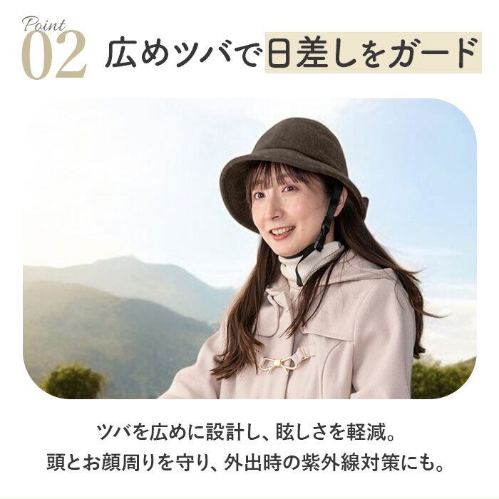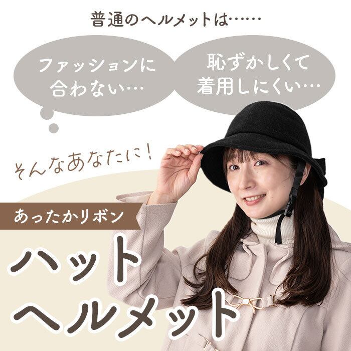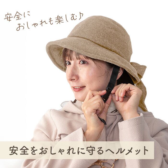 ・帽子感覚で、気軽にヘルメットを装着!「あったかリボンハットヘルメット」。