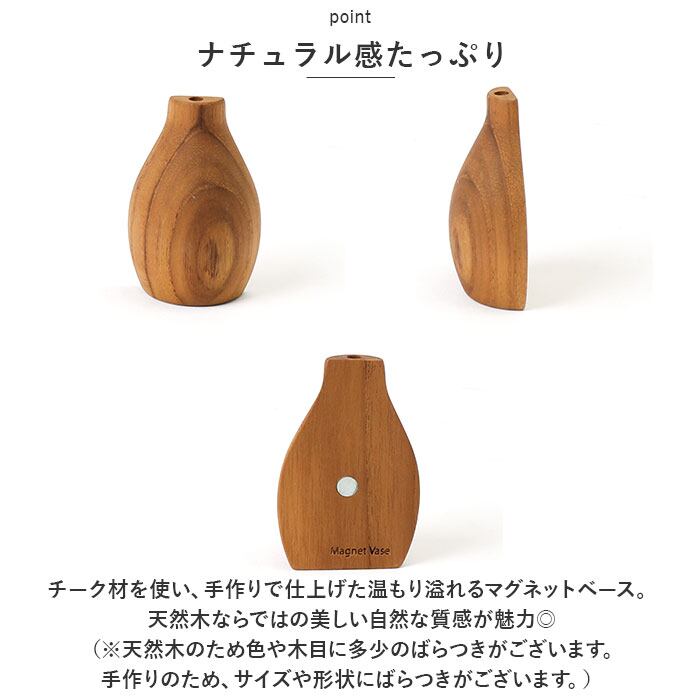 ・チーク材を使い、手作りで仕上げた温もり溢れるマグネットベース。天然木ならではの美しい自然な質感が魅力◎(※天然木のため色や木目に多少のばらつきがございます。手作りのため、サイズや形状にばらつきがございます。)