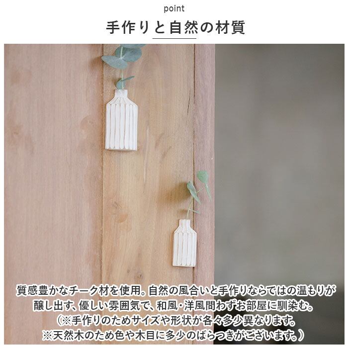 ・質感豊かなチーク材を使用。自然の風合いと手作りならではの温もりが醸し出す、優しい雰囲気で、和風・洋風問わずお部屋に馴染む。(※手作りのためサイズや形状が各々多少異なります。※天然木のため色や木目に多少のばらつきがございます。)