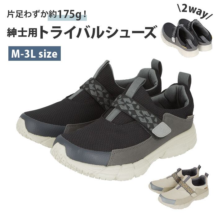 スリッポン メンズ 通販 スニーカー 面ファスナー 2WAY かかとが踏める トライバルシューズ ウォーキングシューズ カジュアルシューズ 軽量 紳士 アウトドア シューズ 靴 歩きやすい グレー ブラック
