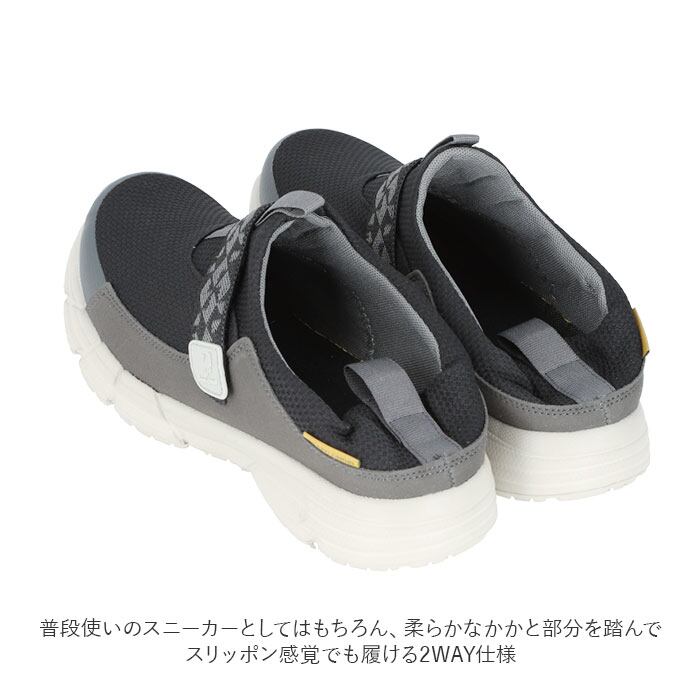 ・普段使いのスニーカーとしてはもちろん、柔らかなかかと部分を踏んでスリッポン感覚でも履ける2WAY仕様。