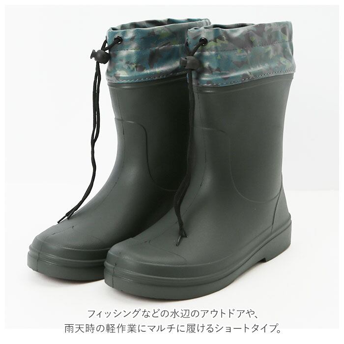 ・フィッシングなどの水辺のアウトドアや、雨天時の軽作業にマルチに履けるショートタイプ。