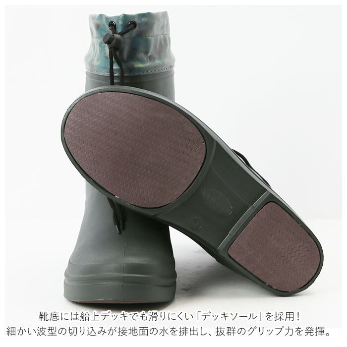 ・靴底には船上デッキでも滑りにくい「デッキソール」を採用!細かい波型の切り込みが接地面の水を排出し、抜群のグリップ力を発揮。