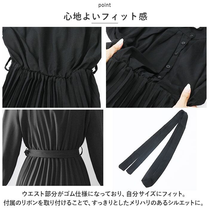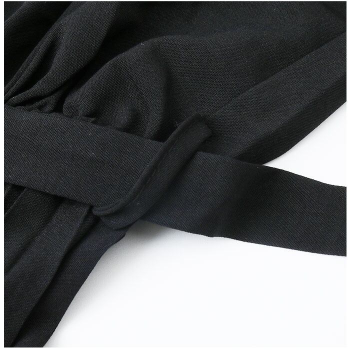 ・ウエスト部分がゴム仕様になっており、自分サイズにフィット。付属のリボンを取り付けることで、すっきりとしたメリハリのあるシルエットに。