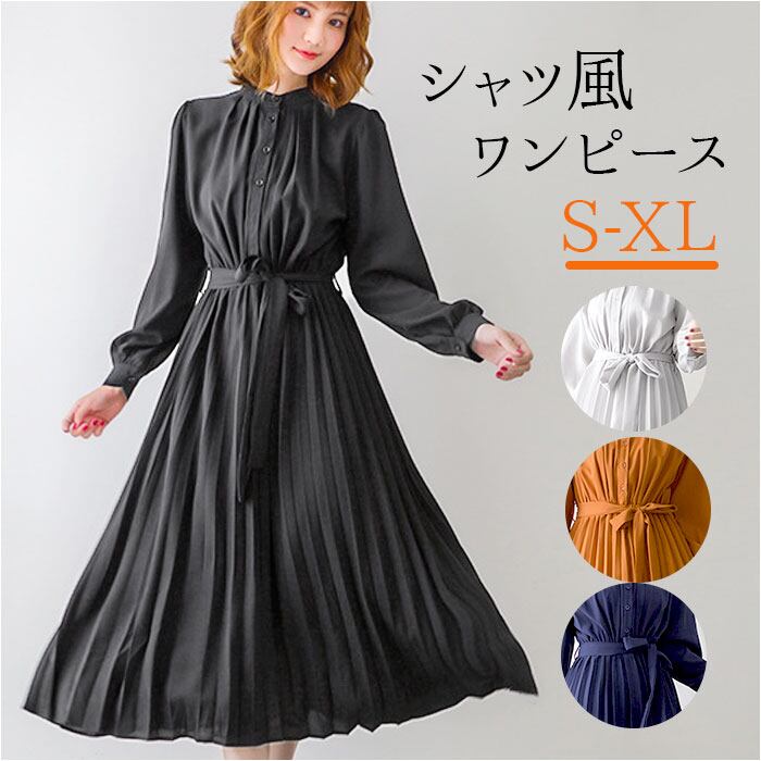 ロング ワンピース シャツ風 シフォン 長袖 gdress4137