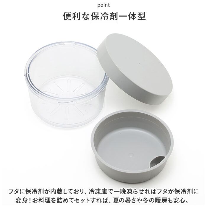 ・フタに保冷剤が内蔵しており、冷凍庫で一晩凍らせればフタが保冷剤に変身!お料理を詰めてセットすれば、夏の暑さや冬の暖房も安心。
