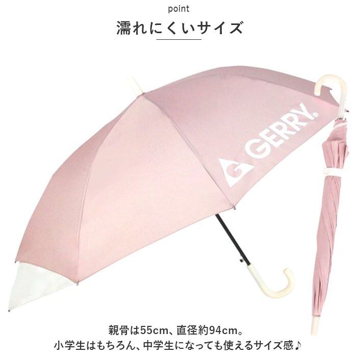 ・傘生地には「GERRY」のブランドロゴ入り。シンプルながらもスポーティーなデザインに。ベーシックなカラー展開で通学用に最適☆