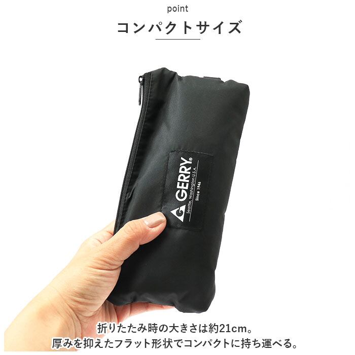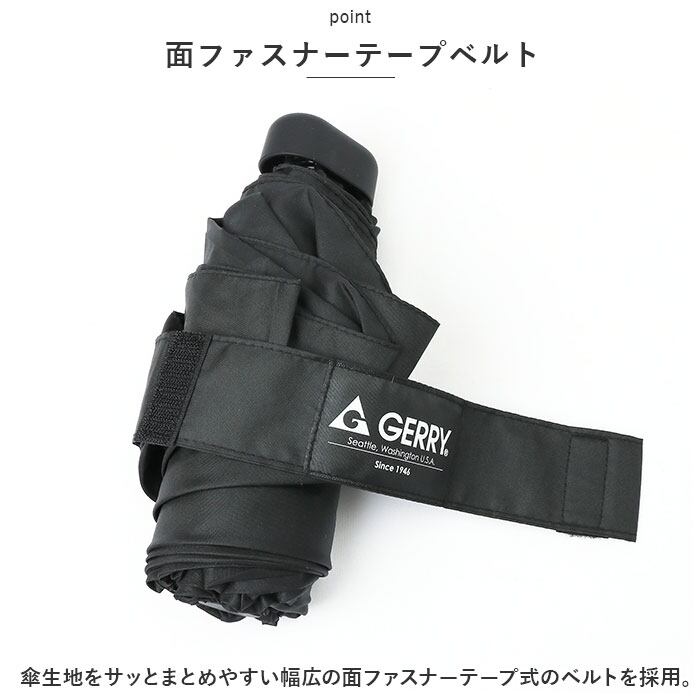 ・傘生地やベルトなど各所に「GERRY」のブランドロゴ入り。シンプルながらもスポーティーなデザインに。ユニセックスで使用できるベーシックなカラー展開。