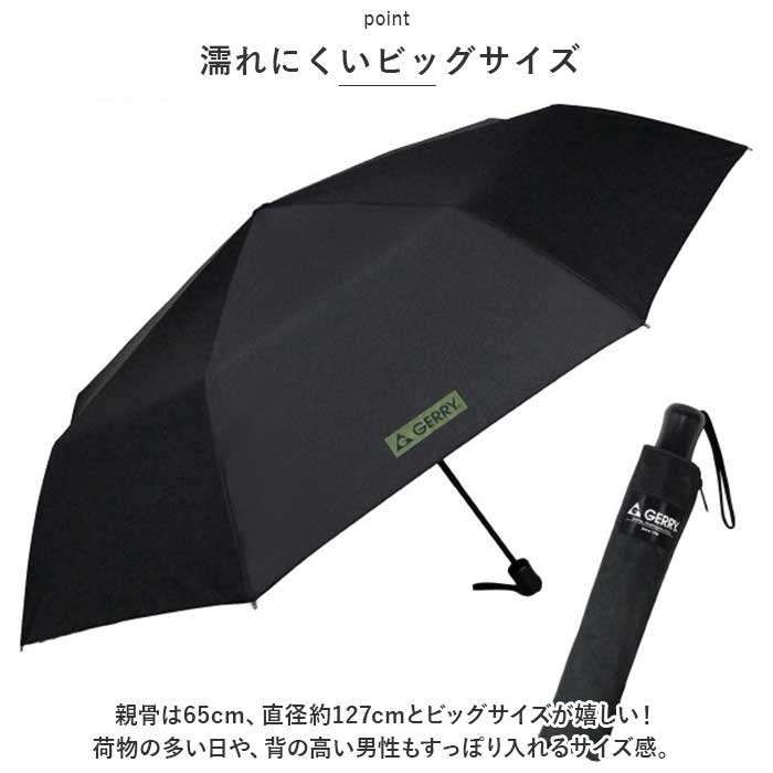 GERRY ジェリー 折り畳み傘 65cm 通販 折りたたみ傘 折りたたみ 折り畳み 傘 かさ カサ アンブレラ 手開き式 手開き 大判 超大判 収納 ワンポイント ロゴ メンズ レディース ユニセックス 男女共通 シンプル カジュアル 雨の日 雨