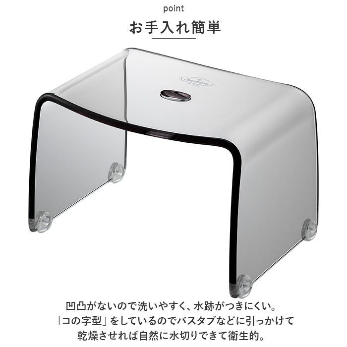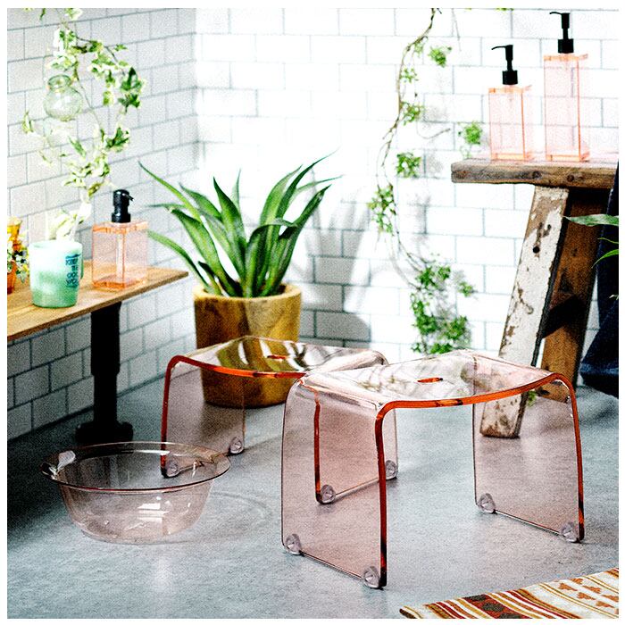 ・クリア素材で軽い使い心地。浴室に馴染むシンプルで無駄のないデザイン。