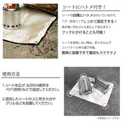 ・シートの四隅にハトメを装備。お手持ちのペグなどで固定したり、フックに引っ掛けることも可能。