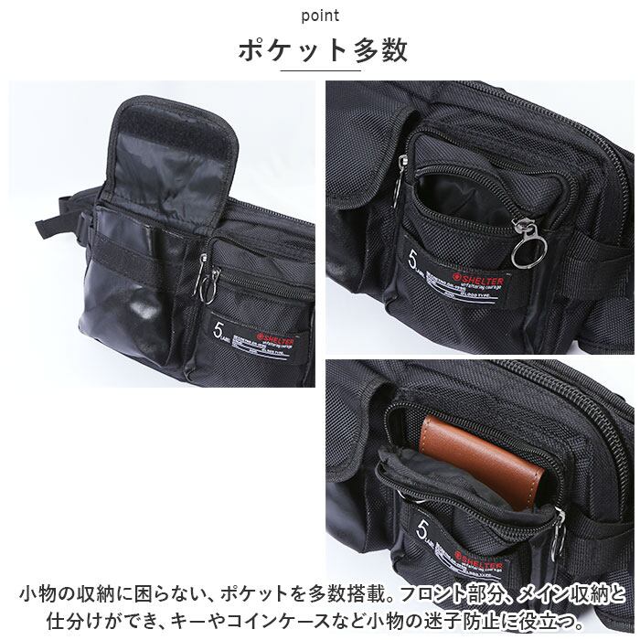 Shelter ウエストバッグ ウェストポーチ 通販 ウエストバック ヒップバッグ ヒップバック サブバッグ サブバック ボディバッグ ボディバック 旅行バッグ 旅行バック 小分け ポケット メッシュ 多機能 トラベル メンズ レディース 男女兼用