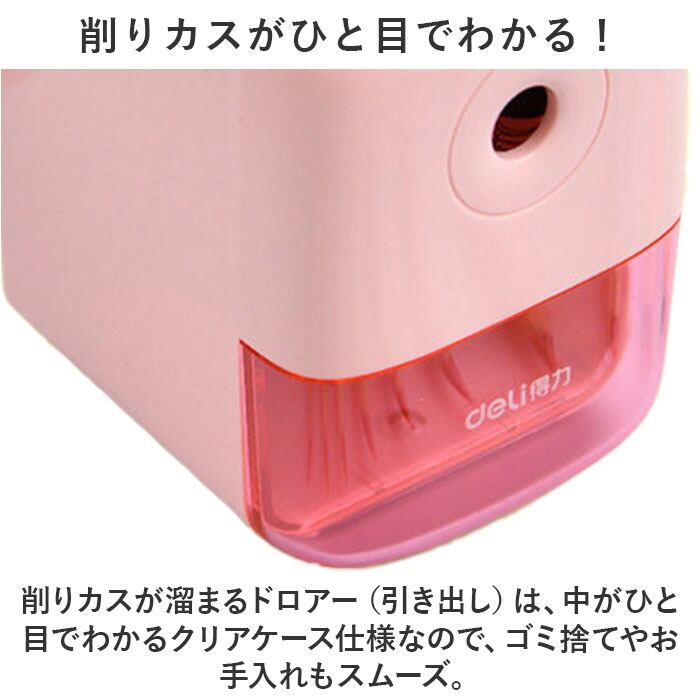 ・削りカスが溜まるドロアー(引き出し)は、中がひと目でわかるクリアケース仕様なので、ゴミ捨てやお手入れもスムーズ。