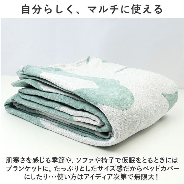・肌寒さを感じる季節や、ソファや椅子で仮眠をとるときにはブランケットに。たっぷりとしたサイズ感だからベッドカバーにしたり・・・使い方はアイディア次第で無限大!