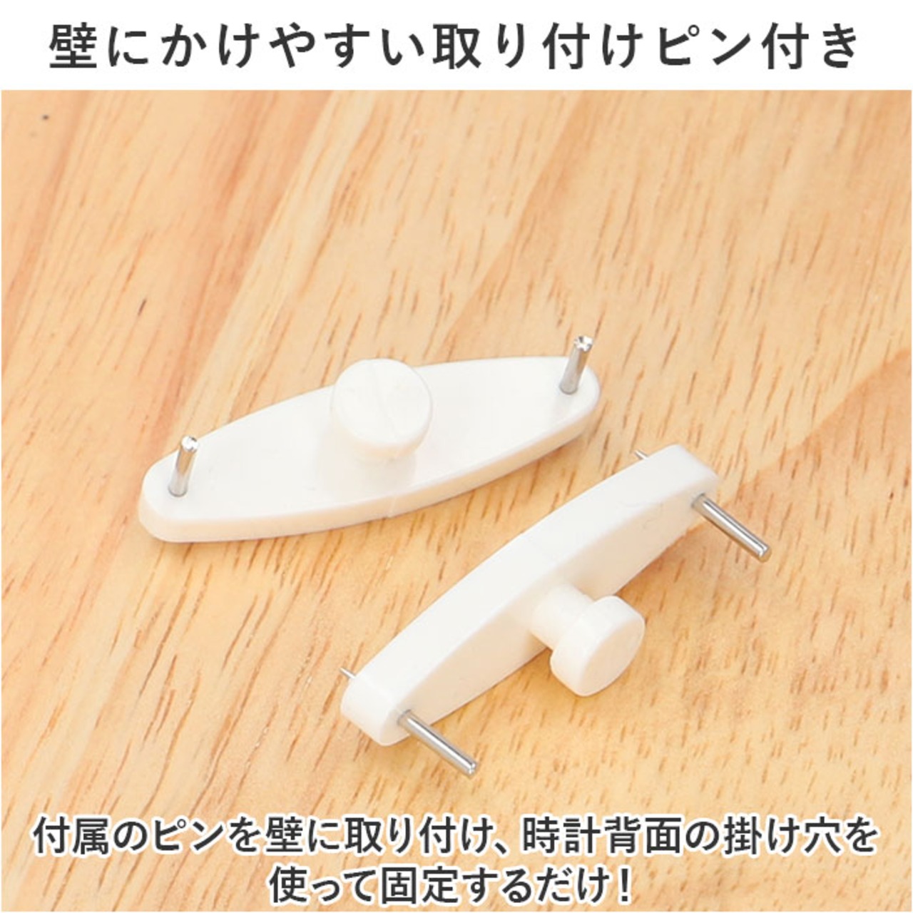 ・付属のピンを壁に取り付け、時計背面の掛け穴を使って固定するだけ!