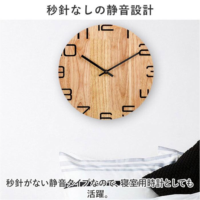 壁掛け時計 木製 アナログ 通販 掛け時計 かけ時計 デザイナー時計 時計 とけい クロック ウォールクロック 連続秒針 音がしない 静音 ムーブメント 天然木 ナチュラル 木目 木 モダン 和風 シンプル インテリア リビング 寝室 おしゃれ デザイナー