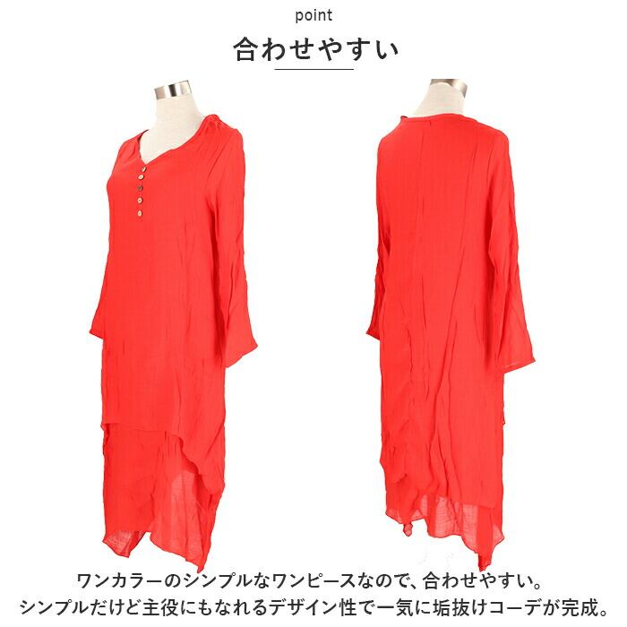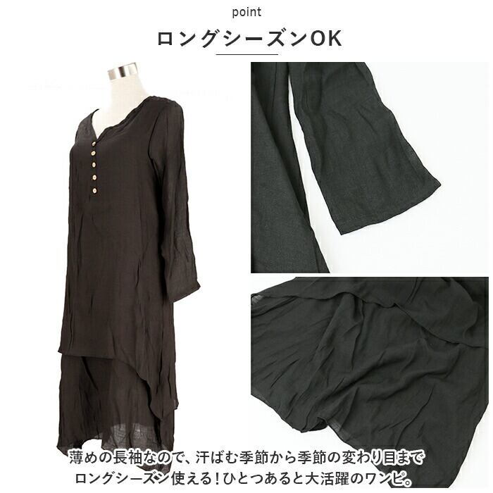 ・薄めの長袖なので、汗ばむ季節から季節の変わり目までロングシーズン使える!ひとつあると大活躍のワンピ。