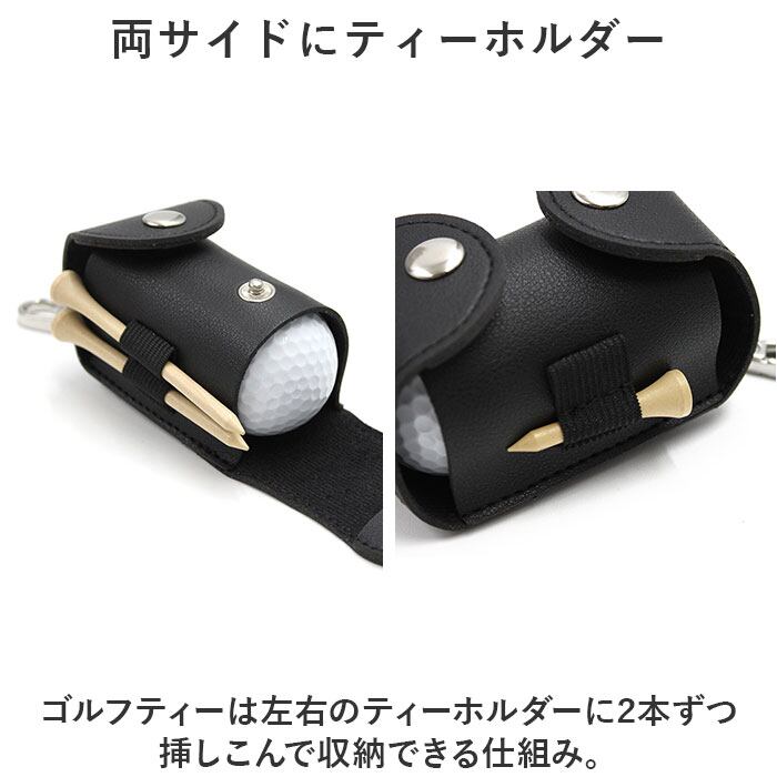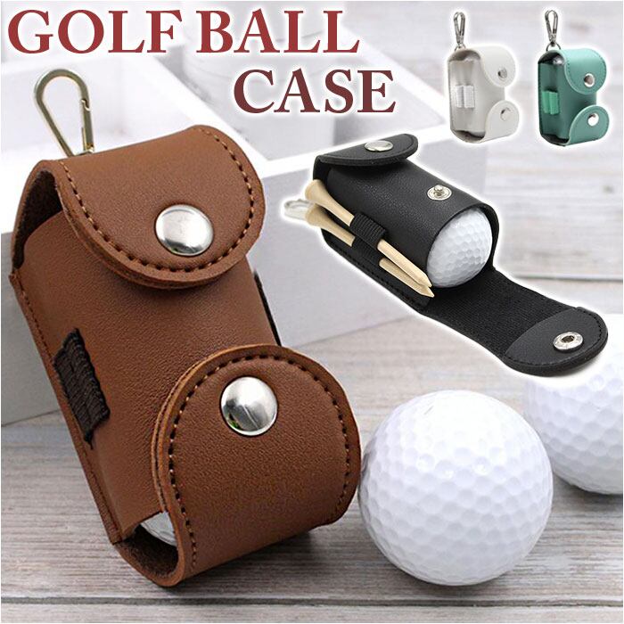 ゴルフ ボールケース おしゃれ 通販 ボール入れ ボール 2個収納 ボールホルダー ボールポーチ ティーケース ティー 収納 スナップボタン PUレザー ベルトループ カラビナ付き コンパクト シンプル 上下開閉 グリーンフォーク ラウンド 景品 ゴルフ用品
