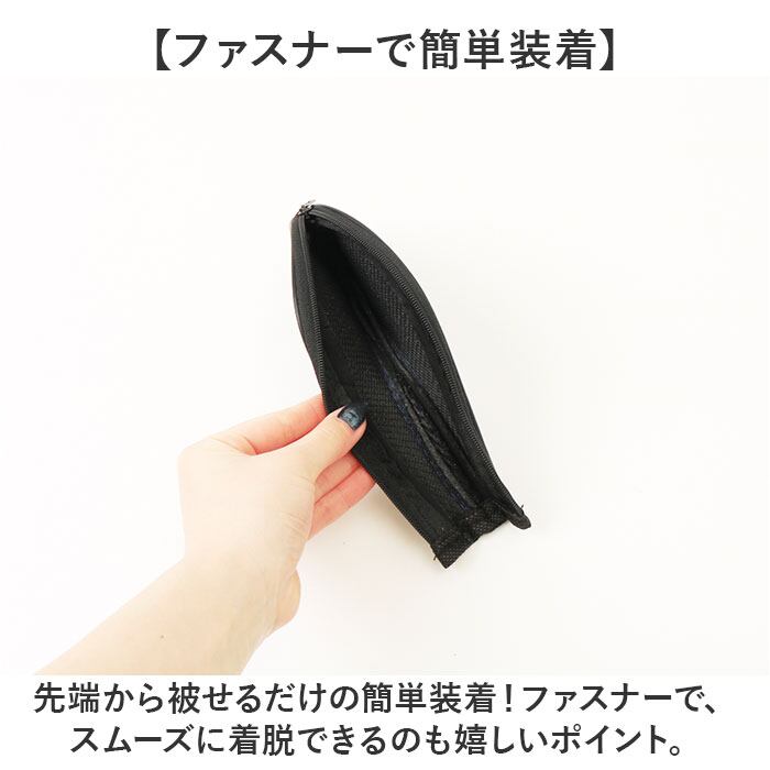 ・先端から被せるだけの簡単装着!ファスナーで、スムーズに着脱できるのも嬉しいポイント。