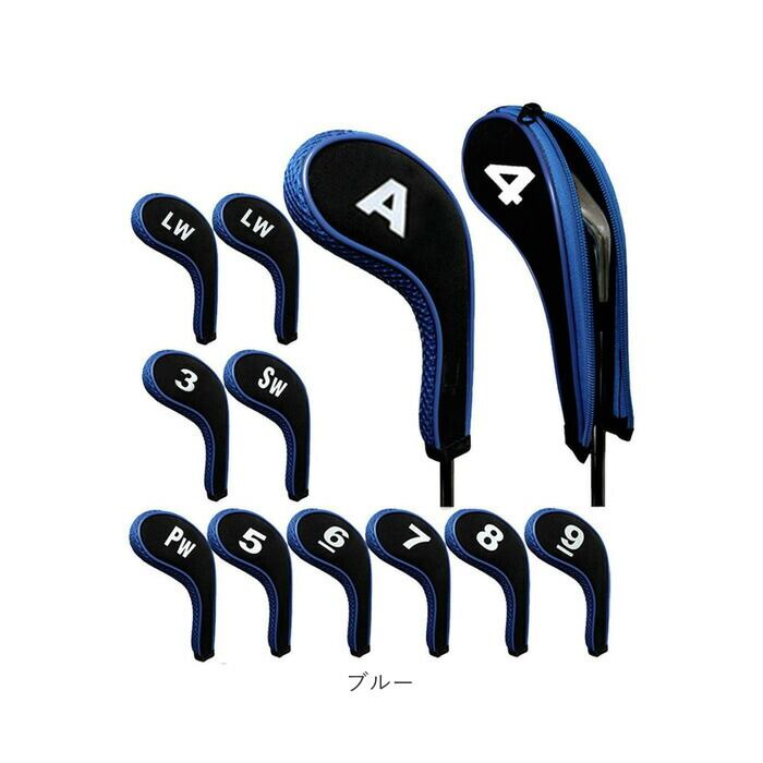 ゴルフ アイアンヘッドカバー ファスナー 12個セット ggolf6022